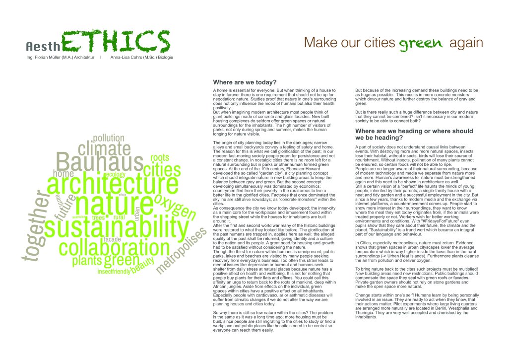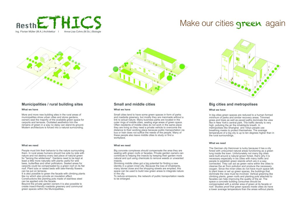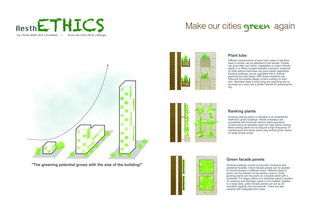 Als Beitrag zum Wettbewerb „beyond bauhaus – prototyping the future“ wurde mit dem Leitthema AesthETHICS – make our cities green again, auf das Potential unserer bestehenden Städte hingewiesen.