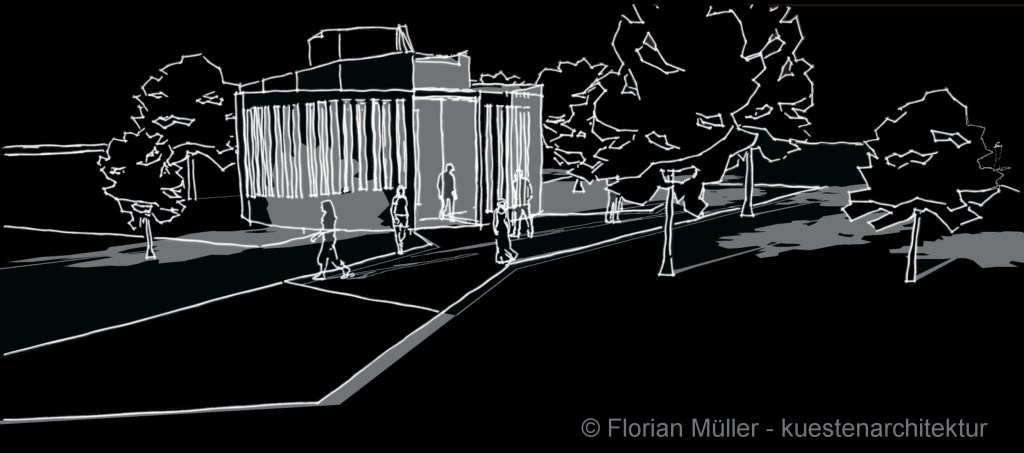Der Entwurf liefert so einen introvertierten Baukörper in einer kalten, schneckenhausförmigen Betonoptik, welcher durch die Gestaltung der Angehörigen und durch ihre zu einer Gedenkstätte wird, welche an die Ereignisse der Vergangenheit erinnert, aber auch die Gemeinschaft der Zukunft stärkt.